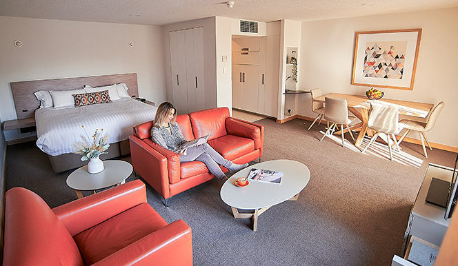 Spacious apartments and hotel rooms in a renovated woolstore building. Known for comfort, service, and an unbeatable central location.